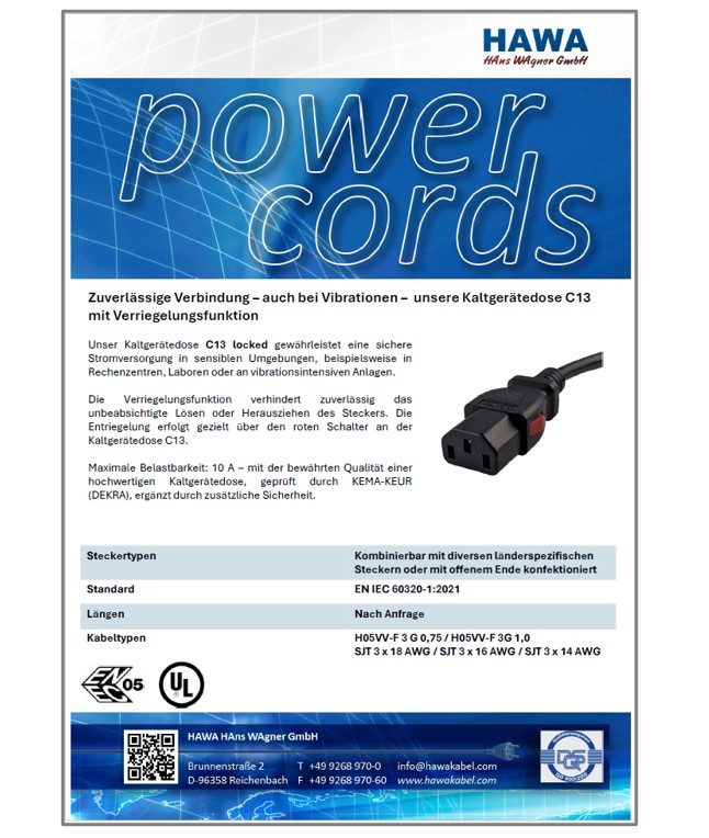 Kaltgerätekabel C13 mit Verriegelung